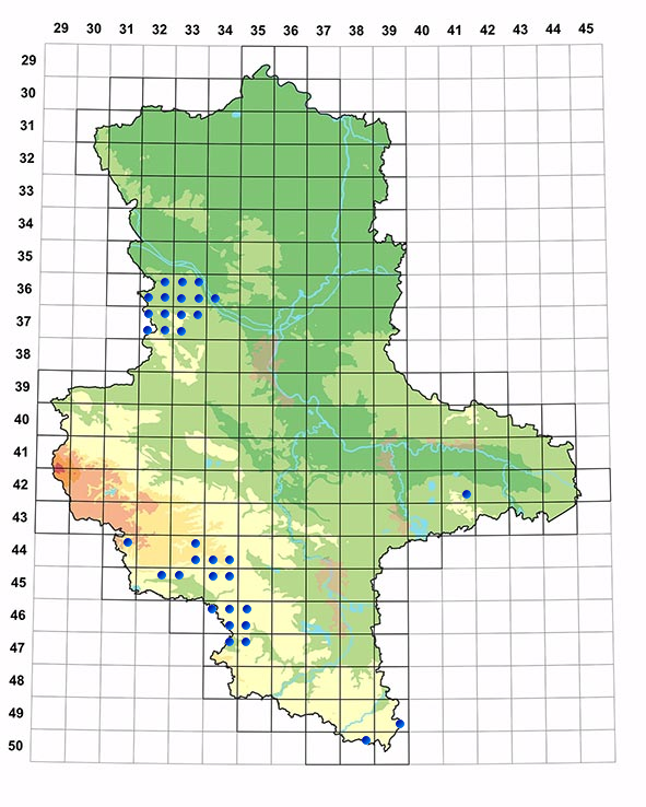 Seit 2014 wurden mit Vorkommen im südlichen Harz sowie im Elbe-Mulde-Tiefland zudem zwei neue Fundorte aus anderen Landesteilen gemeldet.