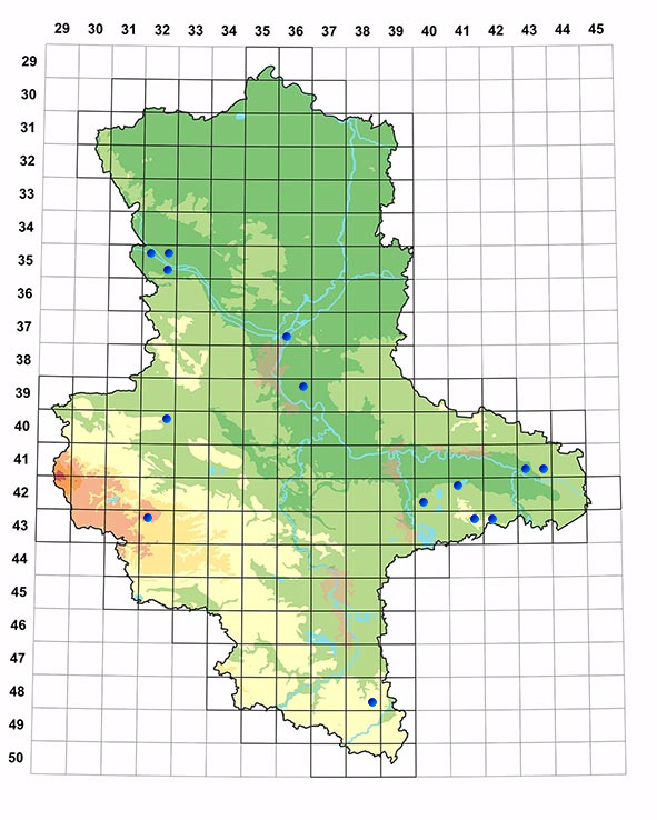 Um das Verbreitungsgebiet der Art in Sachsen-Anhalt sowie dessen mögliche Veränderungen erfassen zu können, werden alle Präsenznachweise (z.B. aus gezielten Kartierungen) gesammelt und auf Basis des 10-km-LAEA-Rasters dargestellt. Als Verbreitungsgebiet gilt dann die gesamte Fläche der „positiven“ 10-km-Raster, d.h. mit mindestens einem aktuellen Präsenznachweis. Die Erfassung der Nachweise erfolgt laufend, die Auswertung zum Ende des jeweiligen Berichtszeitraumes.